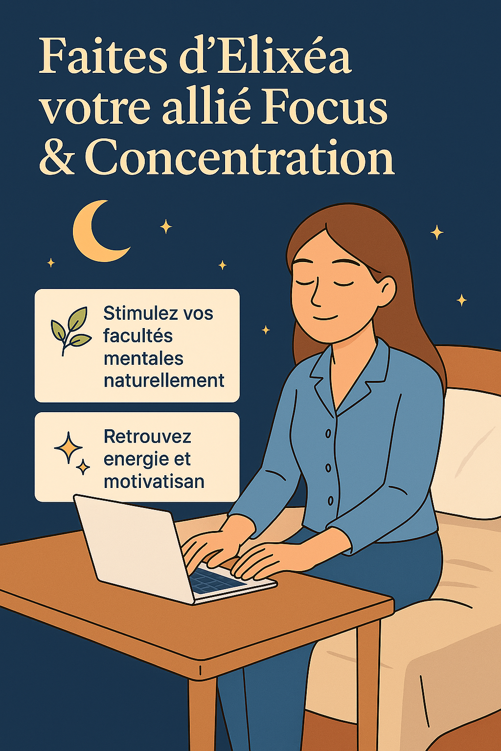 Boostez votre esprit, Avec Elixéa, restez concentré plus longtemps, améliorez votre mémoire et réduisez la fatigue mentale pour gagner en clarté et en performance.