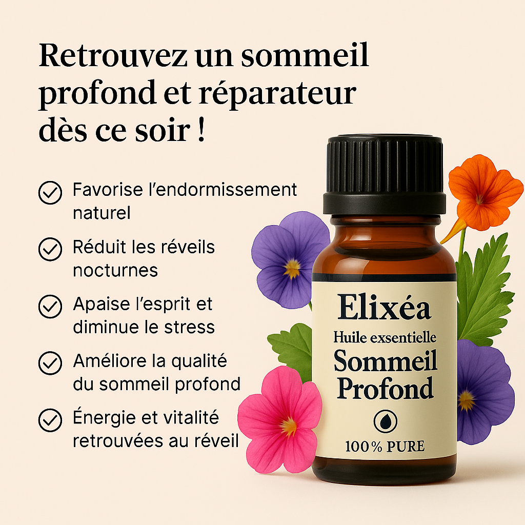 Retrouvez des nuits paisibles .Grâce à Elixéa, l’endormissement devient plus simple, les réveils nocturnes diminuent et chaque matin commence par un vrai sentiment de repos et de vitalité.